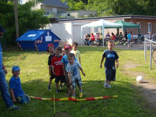 Bevor es jedoch über die leckeren Würstchen vom Grill und den kulinarischen Feinheiten der Eltern herging, kam es zum fußballerischen Schlagabtausch zwischen Kindern und Vätern. Die Väter waren auf Ruhe und Ordnung im Spiel bedacht, während die Kinder immer wieder für kleinere Störfeuer sorgten. Dabei vielen auf beiden Seiten Tore wie am Fließband. Mit einem gerechten Unentschieden ging es in die wohlverdiente Halbzeit. Einige kühle Getränke und ein Schattenplätzchen