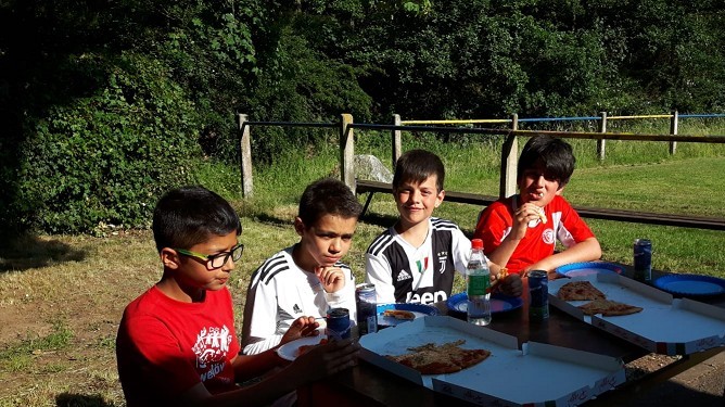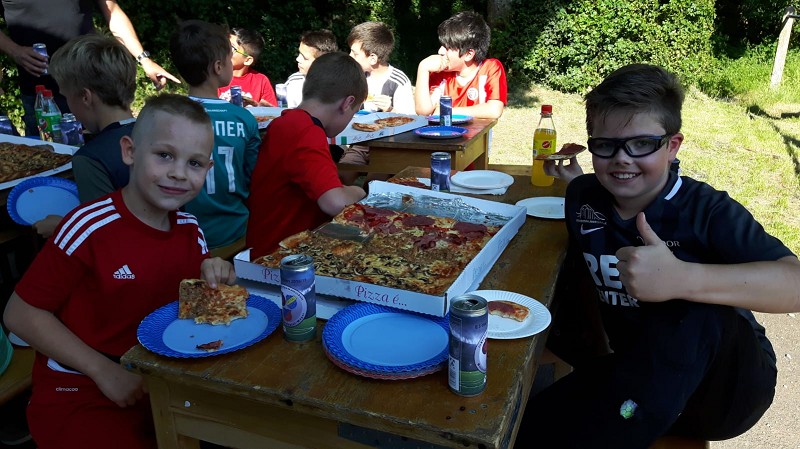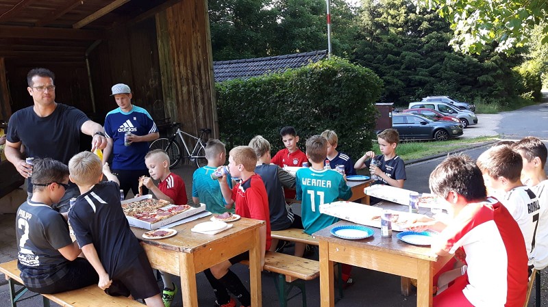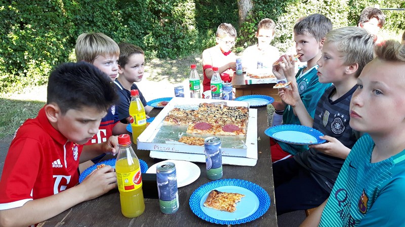 Unsere E3-Junioren ließen es sich bei sommerlichen Temperaturen am 19. Juni einmal gut gehen, denn zum Abschluss der Saison wurde die Mannschaftskasse geplündert und bei der Pizzeria Pinoccio in Mechernich eine große Ladung Pizza bestellt.