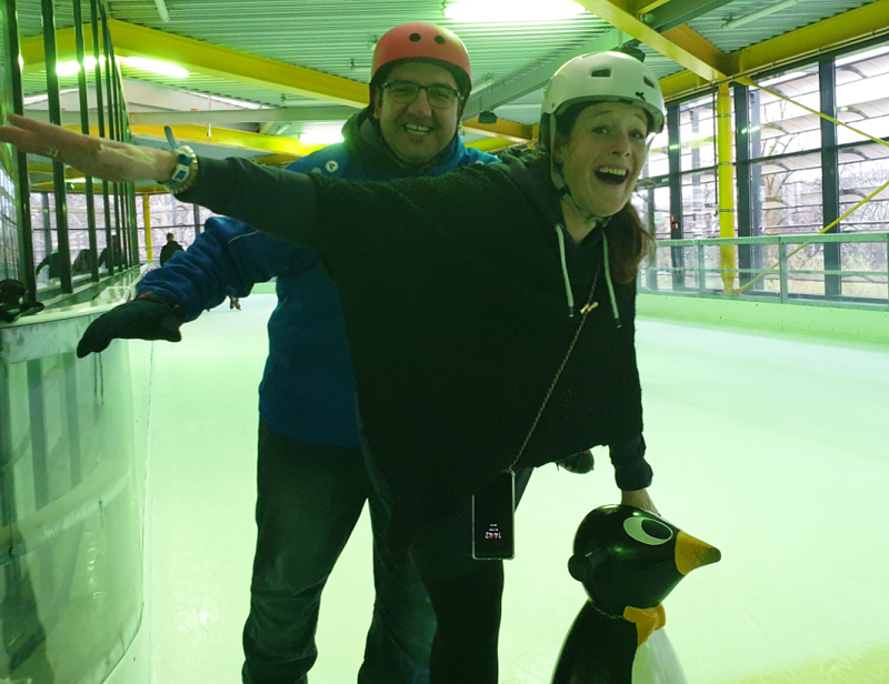 Mitgereisten jemals mit Schlittschuhen auf dem Eis.