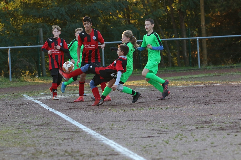 Die Vorzeichen waren, genau wie in drei der bisherigen Spiele eindeutig. Wieder traf man auf einen Gegner, der vornehmlich aus Kindern des älteren Jahrgangs (2006) bestand und dies wurde allein von der Größe her schon eine abermalige Herausforderung für unsere Jungs. Dennoch kam man erstaunlich gut in die Partie und bestimmte sogar knapp fünf Minuten das Spielgeschehen. Heraus sprang ein Torschuss von Niklas Otto, der aber etwas zu weit nach links zielte. Der Gegner kämpfte sich über links in das Spiel und trat nach Startschwierigkeiten in der Folge resolut auf. Leider war sofort der erste Abschluss ein Volltreffer. Moritz Bittner ließ einen Schuss nach vorne klatschen, sodass der aufmerksame Stürmer die Kugel im Netz unterbringen konnte (10.). Dieser Treffer lähmte das Team etwas, denn spielerisch ging nur bis 30 Meter vor dem Tor etwas. Der Keeper hatte selbst nach Standards keine Möglichkeiten sich auszuzeichnen. Auf der anderen Seite musste Moritz zwei Mal energisch eingreifen, war dann aber bei einem wunderschönen Abschluss machtlos. Der Schuss kam von gut 20 Metern und schlug unhaltbar rechts mittig ein (25.). Die Köpfe unserer Jungs gingen gesenkt zu Boden, sodass lediglich Einzelaktionen Grund zur Hoffnung auf Besserung machten. Richtig gefährlich wurde es aber bis zur Pause nicht.