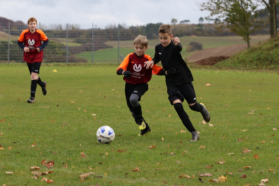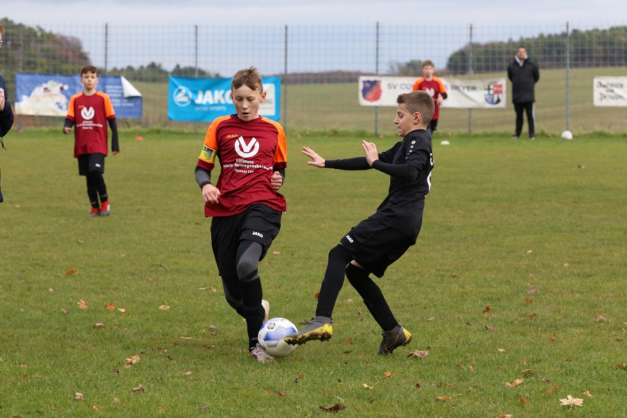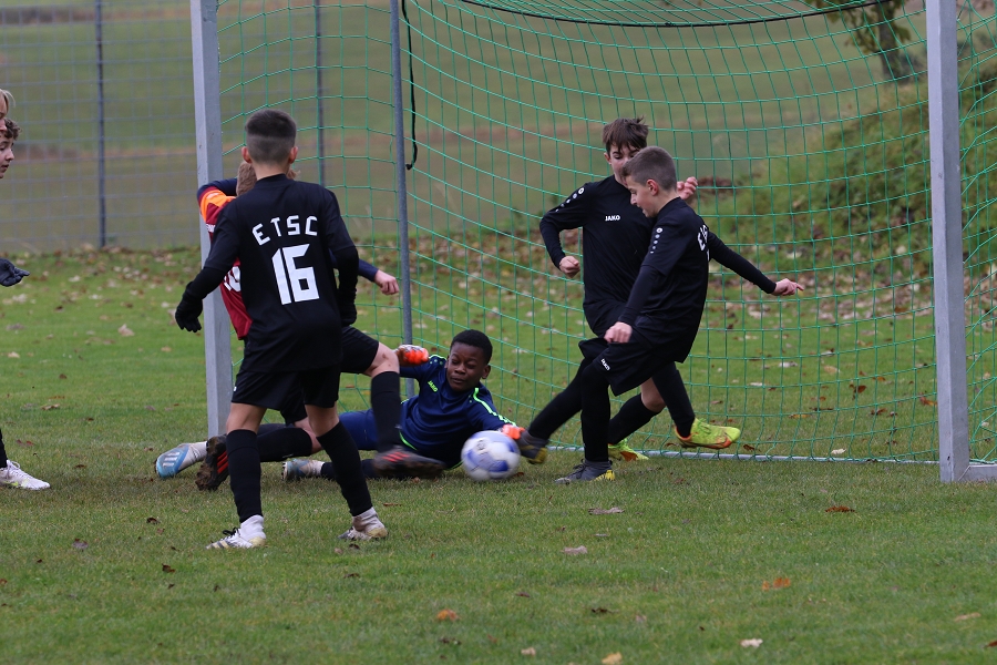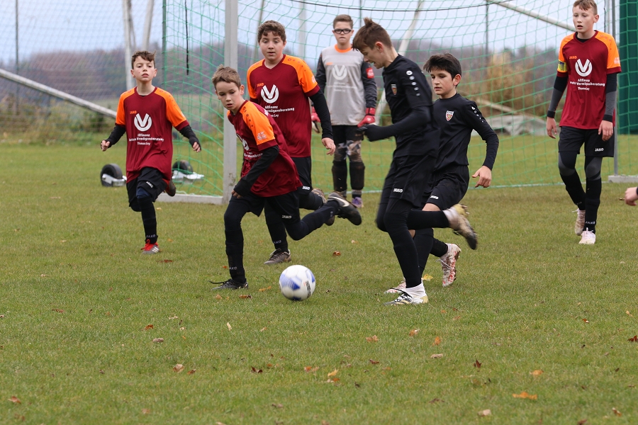 Nach der Pause schwanden dem Gastgeber zunehmend die Kräfte und es kam nur selten noch zur Entlastung. Drei Abschlüsse von Simon, Maxim und Fabi gab es noch, die aber allesamt abgewehrt wurden. Auf der anderen Seite wurde das Spiel insgesamt druckvoller und zielstrebiger und Philipp durfte, nein er musste zur Höchstform auflaufen. Gleich mehrfach bewahrte er sein Team vor dem Rückstand. Als auch er aber einmal geschlagen war, hatte er mit Luca Ba. noch einen Mitspieler auf der Linie, der den Ball aus der Gefahrenzone beförderte. Da war er wieder der Teamgedanke, denn an diesem Nachmittag pushte sich jeder aus der Mannschaft um den Erfolg zu erzielen.