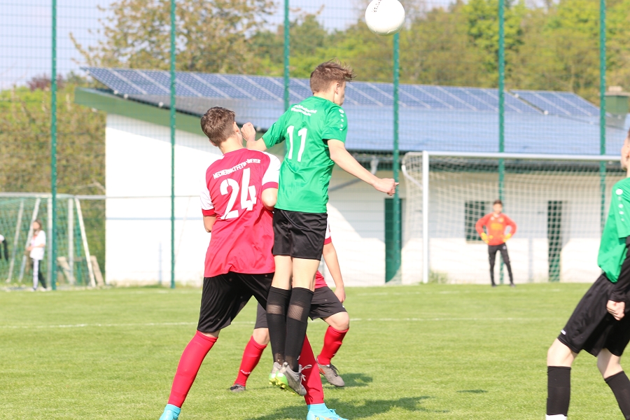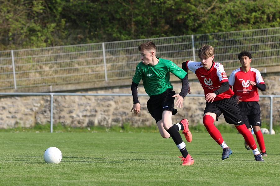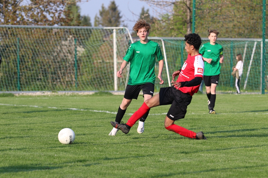 Kirchheim/Arloff/Flamersheim hatte nicht nur mehr an Kaderbreite aufzubieten, sondern war auch die spieltechnisch bessere Mannschaft. Unsere Jungs, bei denen Leo aus der C2 kurzfristig als zwölfter Mann zum Einsatz kam (Danke dafür Leo), waren kämpferisch auf Augenhöhe. Spielerisch schaffte man es nur vereinzelt Akzente zu setzen, sodass man meist in der Abwehrhaltung dem Ball und Gegner gegenübertreten musste. Kirchheims Führungstor, glich Niklas früh per Foulelfmeter noch aus, doch dann traf Kirchheim bis zur Pause gleich drei Mal und setzte sich ab. Zwei Tore gingen auf die Kappe der Abwehr und dann war da noch ein schöner Schuss in den Winkel.