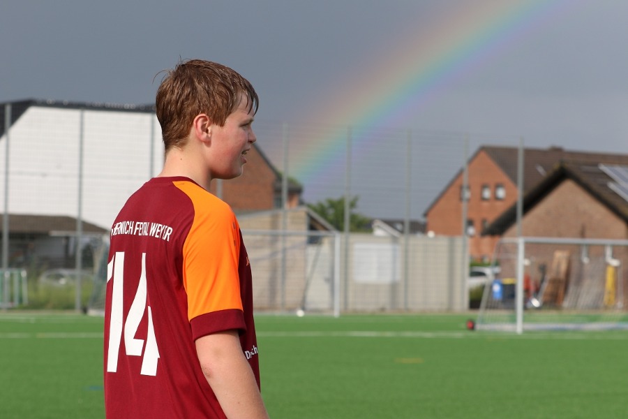 Fußball könnte so einfach sein. Nimm einen Sportplatz, am besten den in Bessenich. Nimm dazu zwei kommunikative Trainerteams, am besten Anna-Isabell und David Langstein von Bessenicher Seite sowie Nico Schmitz und Torsten Schmidt von Mechernicher Seite und nimm zwei Mannschaften die einfach nur etwas gegeneinander zocken wollen. Hier nehmen wir dann den SV Rhenania Bessenich und unsere D1-Junioren. Und schon steht einem kleinem Leistungsvergleich mit schöner Randnote nichts entgegen. So geschehen am Dienstagabend auf der neuen Platzanlage von Bessenich.