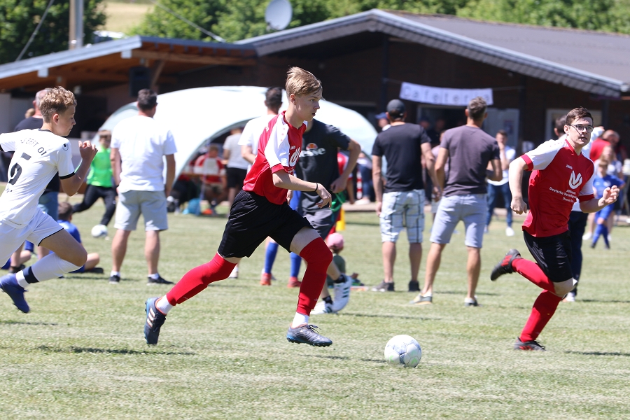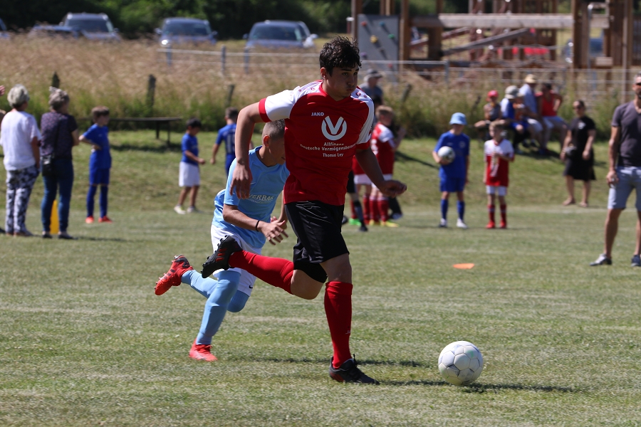 Zum Abschluss ging es dann gegen die Jungs von Firmenich-Satzvey-Kommern. Hier war klar, dass ein Sieg die Chancen auf den Turniersieg deutlich erhöhen würde. Da auch das Torverhältnis eine Rolle spielen sollte, war es notwendig deutlich zu gewinnen. Und das taten unsere Jungs letztlich mit einem klaren 3:0 Sieg. Ibrahim eröffnete früh den Torreigen (2.). Danach ging es auf und ab und beide Seiten hatten ihre Tormöglichkeiten. Tor Nummer zwei ging an Felix (12.), bevor Ibrahim eine Minute später für das Endergebnis sorgte. Ein klarer Erfolg, der die JSG Erft in ihrem letzten Spiel unter Druck setzte. Die jungen Kuchenheimer brauchten für den Turniersieg nun ein 5:0 oder mehr gegen den SSV Weilerswist. Zwar legte Erft 01 fulminant los, schaffte aber "nur" ein 2:0, sodass unsere Jungs in ihrem letzten Auftritt als C-Junioren noch einen Turniersieg einheimsen konnten. Ein schöner Abschluss der zwei C-Jugendjahre und ein weiterer Turniersieg in Glehn. Die 2007er hatten bereits im Bambinialter, einmal bei der F-Junioren und einmal bei den E-Junioren dort gewonnen.