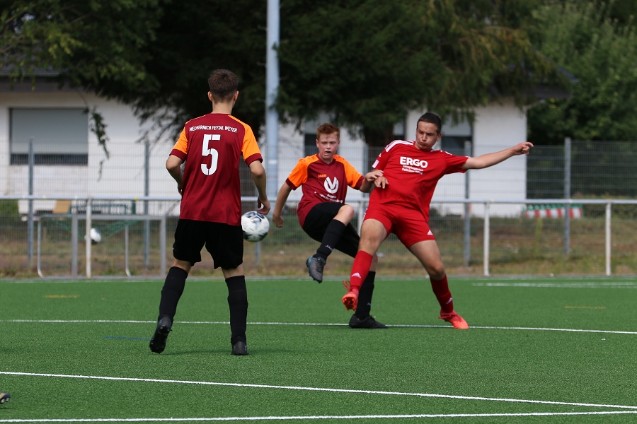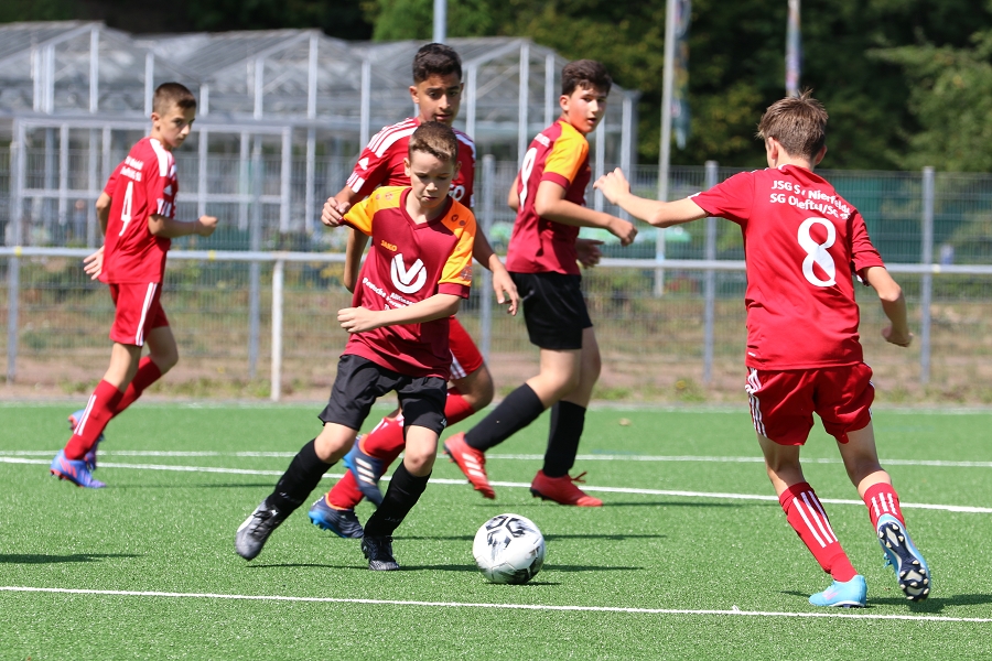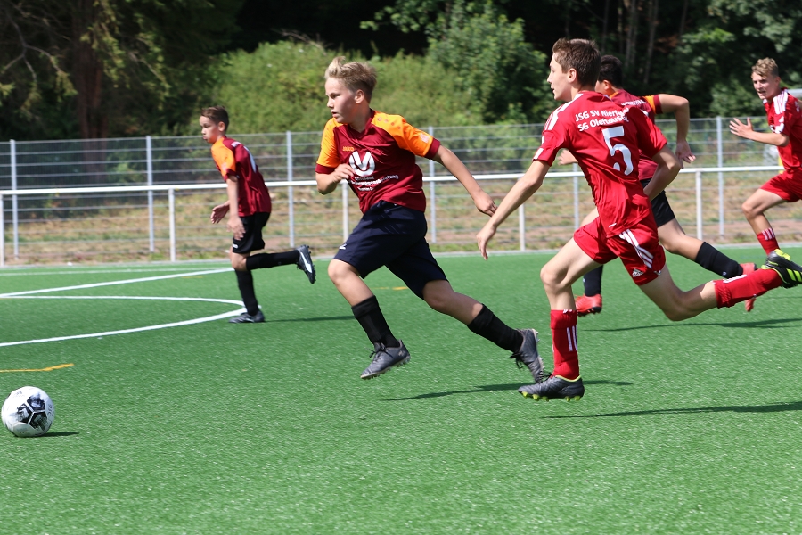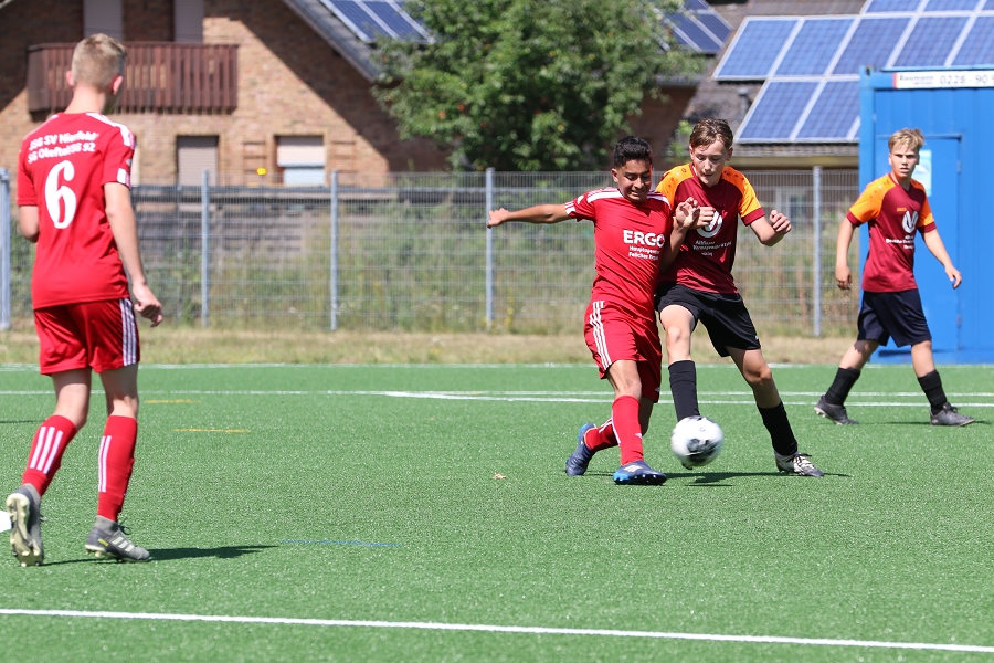 Nur eine Hand voll Trainingseinheiten verblieben bis es zum ersten Pflichtspiel nach Nierfeld ging. Dort erwartete uns bei sonnigen Wetter und frisch verlegten Kunstrasen (Anm.: Nierfeld war hart von der Flut getroffen) die Mannschaft der JSG Nierfeld/SG92/Oleftal zum ersten Meisterschaftsspiel als C-Jugend. Ja ja, so "groß" sind sie geworden unsere 2009er. Mit Samuel, dessen Vater Theo auch im Trainingsbetrieb mit unterstützt, und Felix durften wir nun auch offiziell zwei neue Spieler mit in den Kader aufnehmen. Damit gehen wir mit 19 Spielern des 2009er Jahrgangs und Mirvan (2010er) recht ordentlich aufgestellt in die Saison.