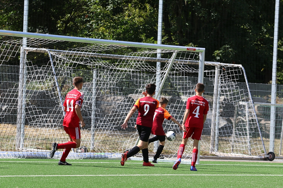Die C2-Junioren (U14) sind mittlerweile auf dem großen Spielfeld angekommen. Als Staffelsieger der letzten D-Juniorensaison ging es in die Sommerpause und diese wurde ferien- und urlaubsbedingt lang, sehr lang. Erst in der letzten Ferienwoche konnte Trainer Torsten Schmidt, der auf seinen urlaubenden Kollegen Nico Schmitz zunächst verzichten musste, wieder die Jungs um sich scharren und in das Training einsteigen.