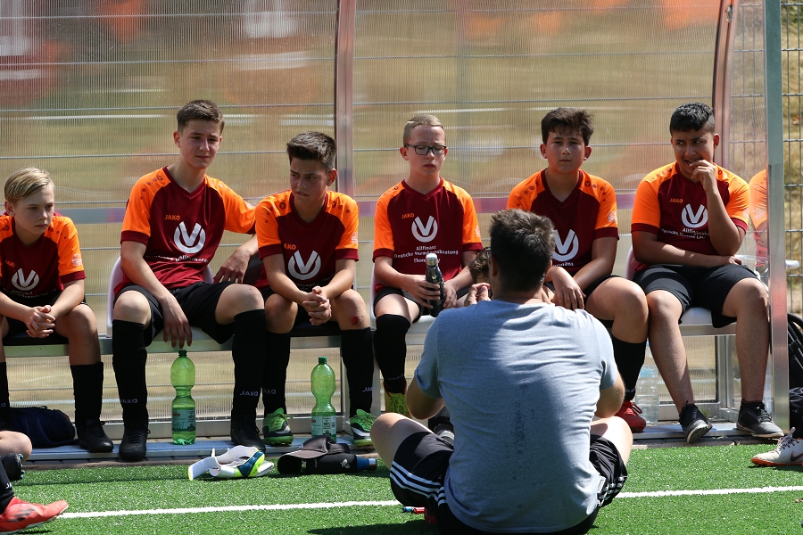 Trainer Torsten analysierte die Hälfte eins ruhig sowie sachlich und lobte viel. Seine kleine Kritik nahmen die Jungs auf und wollten gemeinsam in der zweiten Hälfte alles geben. Die Jungs nahmen dies zum Anlass, es im zweiten Durchgang mit mehr Gegenwehr und Einsatz anzugehen. Wenngleich der Gastgeber vermehrt zu Abschlüssen kam, war der Wille bei unseren Jungs erkennbar und sie kämpften bis zum Umfallen. Erfreulich war, dass Simon per Flachschuss aus 16 Metern zum 2:5 traf (45.) und das Luca Ba., Senad und auch Maxim weitere Torchancen hatten. Lange sah es danach aus, das unsere Jungs diese Halbzeit gar gewinnen konnten, aber der Gegner der zuvor vielfach gute Möglichkeiten ausließ, schaffte es in der Schlussminute noch auf das Ergebnis auf 6:2 zu stellen. Es blieb der einzige Gegentreffer nach der Pause und somit gingen letztlich beide Teams in einem sehr fairen Spiel mit guter Laune vom Platz.