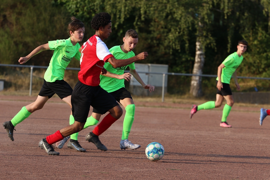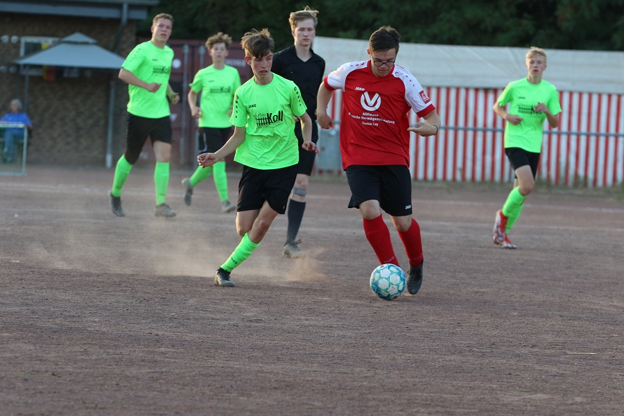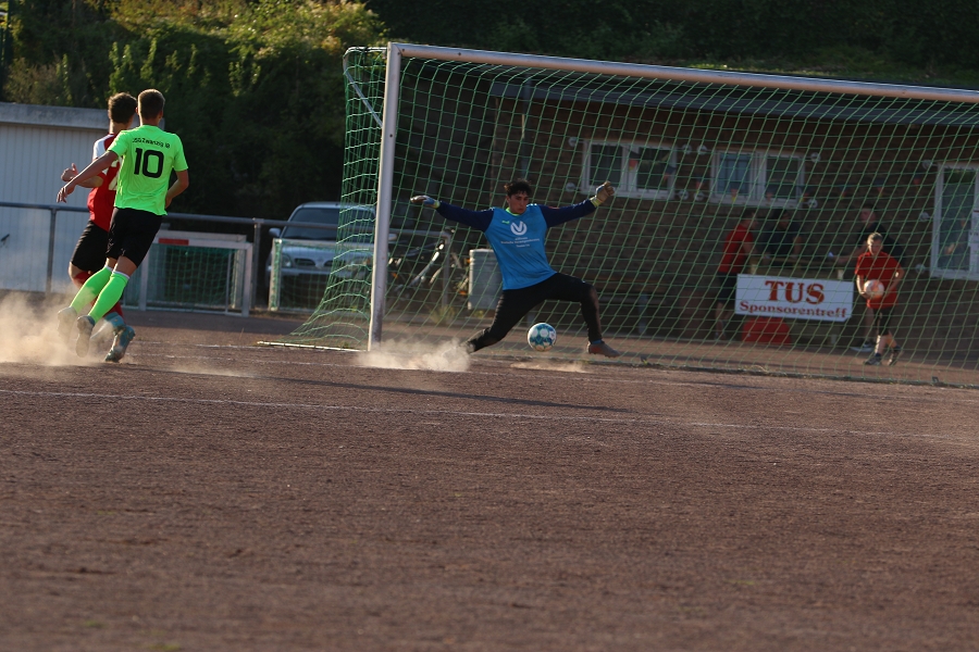 Unsere B-Junioren hatten nach einem Freilos in Runde eins nun im Achtelfinale den Nachwuchs der JSG Zwanzig 18 zu Gast. Ein Spiel, welches auf dem Rasenplatz hätte ausgetragen werden sollen, doch Verein und der Stadtsportbund sahen die Gefahr, dass die erst kürzlich wieder freigegebene Spielfläche an der Schule, zu stark benutzt und dadurch auch schneller wieder abgenutzt wird. Die Folge: Platzsperre für alle Mannschaften für zwei Wochen! Somit war man schneller wieder im Eifelstadion als man dachte. So eine Farce mit der Sportplatzlandschaft gibt es wohl nur bei der TuS und in Mechernich. Nun gut es musste ja irgendwie gehen. Der Untergrund im Eifelstadion war aufgrund der Trockenheit eines Betonboden ähnlich und erwies sich vielleicht auch deshalb einmal mehr beim 2007er Jahrgang als richtiges Faustpfand. Mit 3:2 (1:2) war man nämlich erfolgreich.