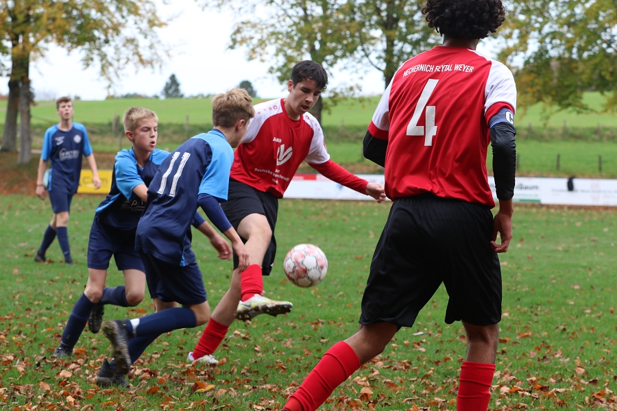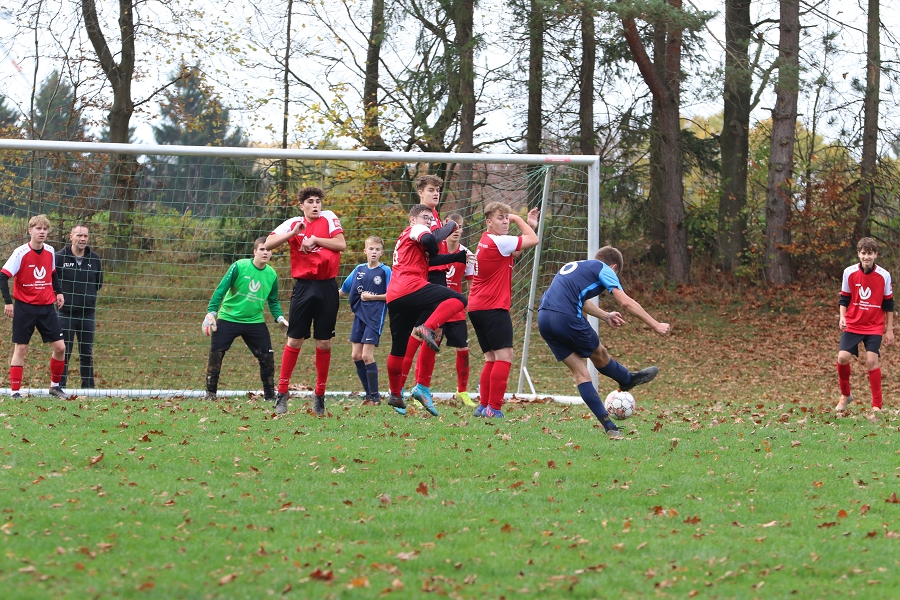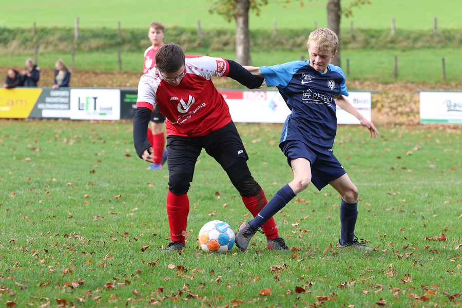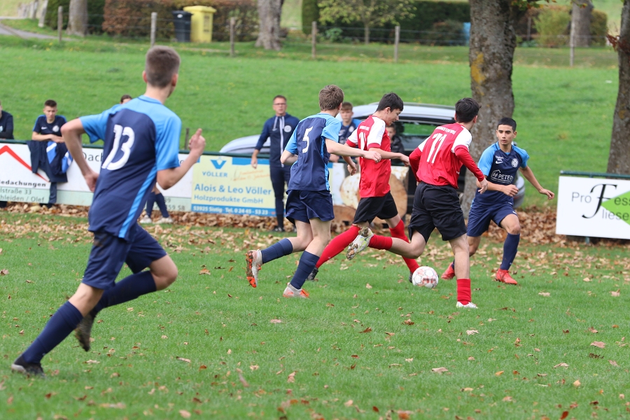 Fazit: Die Partie war aus Gästesicht alles andere als schön anzusehen. Der Drang die Zweikämpfe anzunehmen war hart an der Grenze, denn neben Ball flog auch oft ein Heimspieler zu Boden. Somit war statt eines schönen Fußballspiels viel Kampf im Spiel. Man durfte aber das Gefühl haben, dass dies eher schädlich für das eigene Spiel war, weil kein einziger Feldspieler seine Normalform abgerufen hat. Einzig Moritz im Tor, der völlig fehlerlos unterwegs war, dürfte sich ein kleines Sternchen an das Trikot nähen. Die Gastgeber waren heute, wie auch schon im Hinspiel das bessere Team, belohnten ihren Einsatz dieses Mal auch mit drei Punkten und durften sich im Anschluss verdient vom eigenen Anhang feiern lassen. Für die Einheimischen bedeutet der Sieg auf jeden Fall ein Startplatz in der Sonderliga, da sie den zweiten Platz sicher haben. Wir dürfen gespannt sein, ob im letzten Heimspiel (Sonntag, 6.11., 10.30 Uhr, Eifelstadion) eine Reaktion unserer Jungs auf diese durchaus vermeidbare Niederlage gegen die JSG Zwanzig 18 folgt. Glückwunsch nach Golbach/Sötenich/Rinnen/Sistig-Krekel zum Sieg und Danke an Tobias Winter für die gute Spielleitung in einem nicht einfach zu leitenden Spiel. Gut gemacht Tobias.