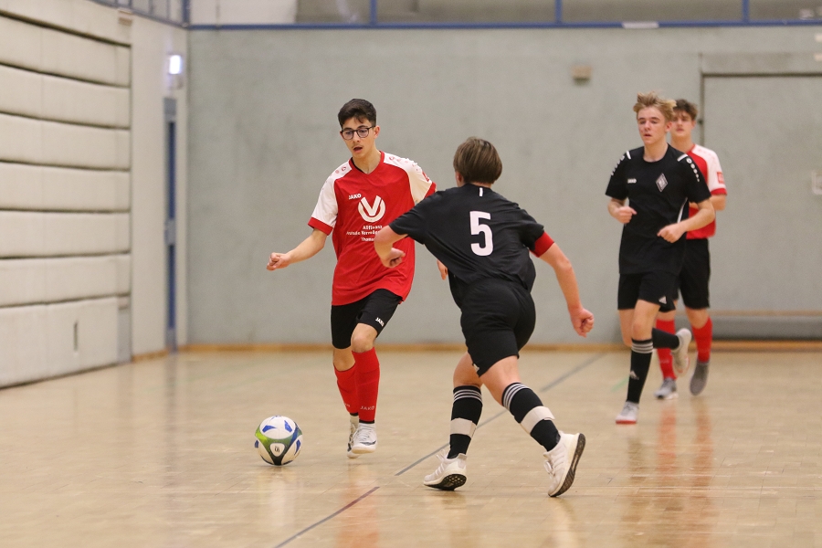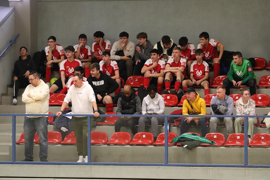 Es war schon eine coole Sache, die sich da um unsere B-Junioren in der Nacht vom 4. auf den 5. Februar abspielte. Auf Einladung des FC Rot-Weiss-Lessenich (Stadtteil von Bonn) durften wir am Lauri-Cup für B-Juniorenmannschaften teilnehmen. Die Besonderheit daran, es war ein Mitternachtsturnier und es fand in der großen Hardtberghalle in Bonn statt. Die ehemalige Heimspielstätte der Telekom Baskets Bonn wirkt immer noch recht imposant und bietet Platz für mehr als 3.000 Zuschauer und so war sie allein von den Dimensionen her mit Sicherheit eines der größten Erlebnisse für unseren 2007er Jahrgang.