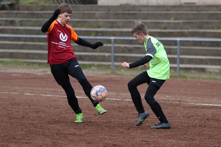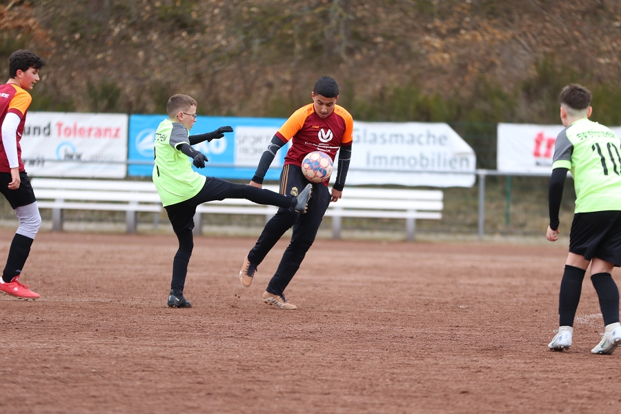 Aufgrund des letzten Platzes in der Herbstrunde wurde unsere C2 für die Früjahresrunde in der tiefsten Staffel für C-Junioren auf Kreisebene eingeteilt. Dort soll es endlich mal wieder zu Erfolgserlebnissen kommen. Bevor der Ligaspielbetrieb losging gab es zwei Testspiele mit letztlich ernüchternen Ausgängen. Sowohl gegen Kommern-Firmenich-Satzvey als auch gegen die eigene C1 gab es hohe Niederlagen und zumindest vom Ergebnis her nichts Neues zu berichten. Zu weit auseinander klafft die Leistungsdichte mit anderen Mannschaften. Und erst recht, wenn sie dann im Schnitt auch noch ein Jahr älter sind. Es wurde von Torsten, der immer mehr Unterstützung von Theo erfährt, viel probiert und die Jungs durften und sollten sich auf verschiedenen für sie neue Positionen versuchen. Die personelle Situation ist mit 19 Spielern weiterhin recht gut, wenn ja wenn dann auch alle an einem Strang ziehen. Nicht mehr zum Team gehören Cosmin und Ryan, die dem Fußballsport "Lebe wohl" gesagt haben. Dafür sind Felix H. (eigene C1) und Fabio (zuletzt VfR Bachem) neu dabei.