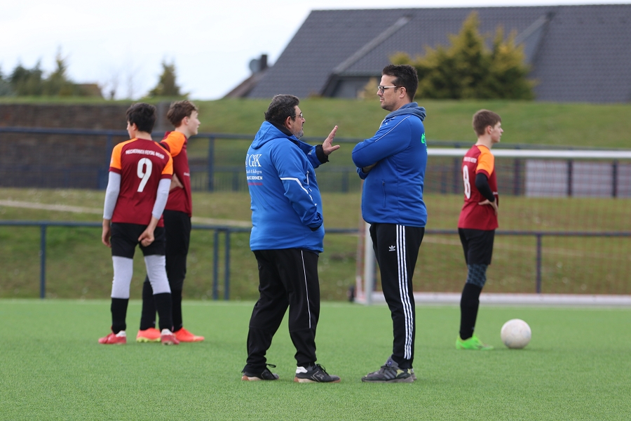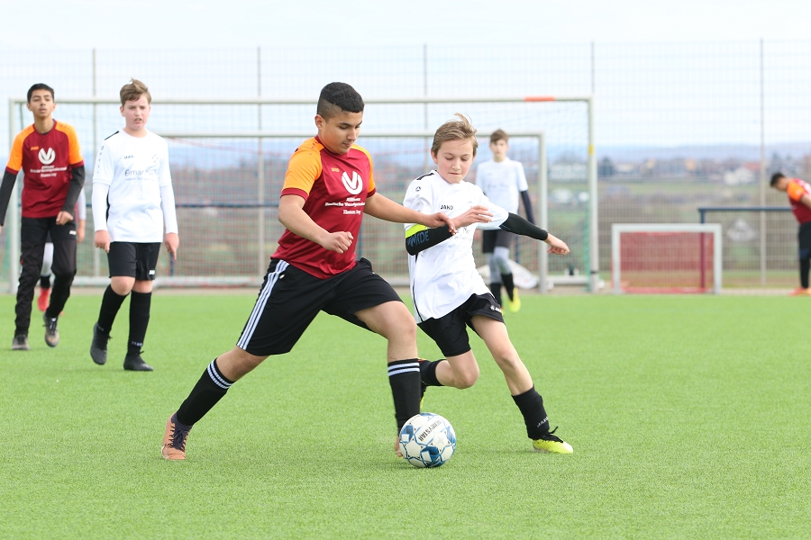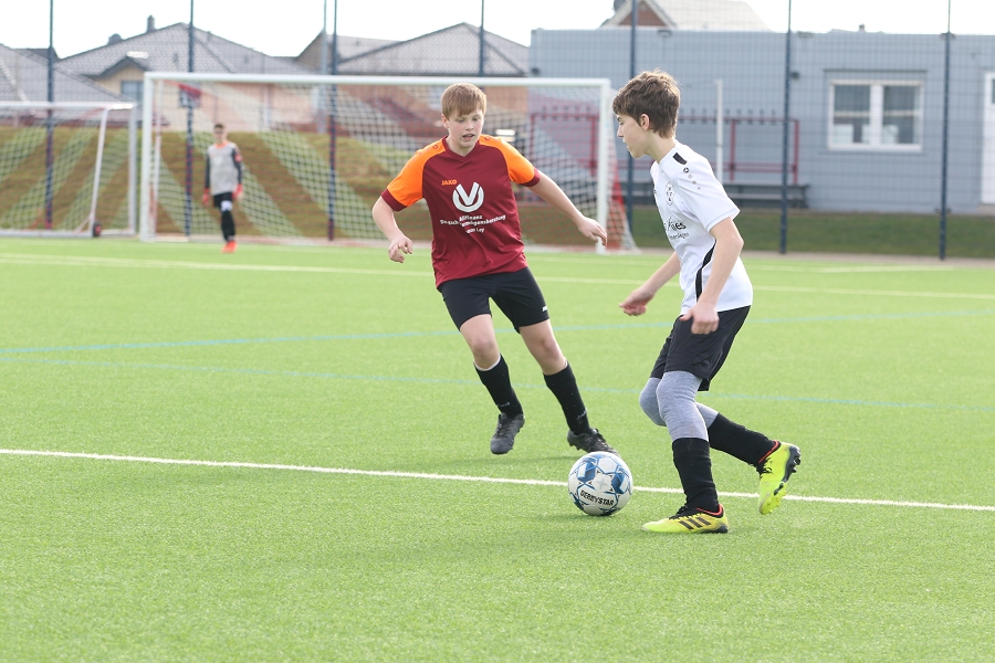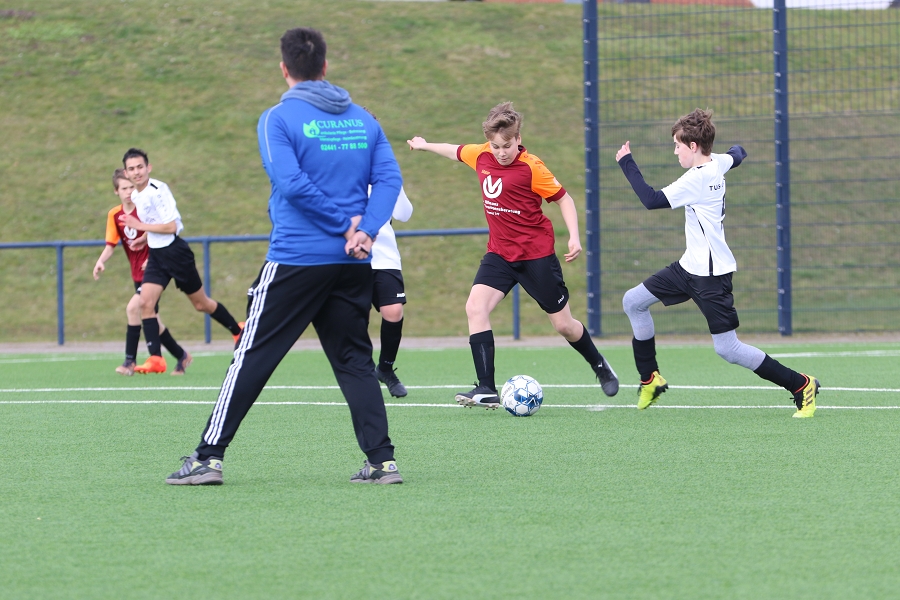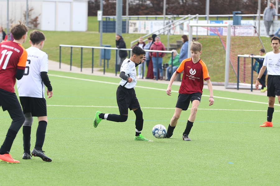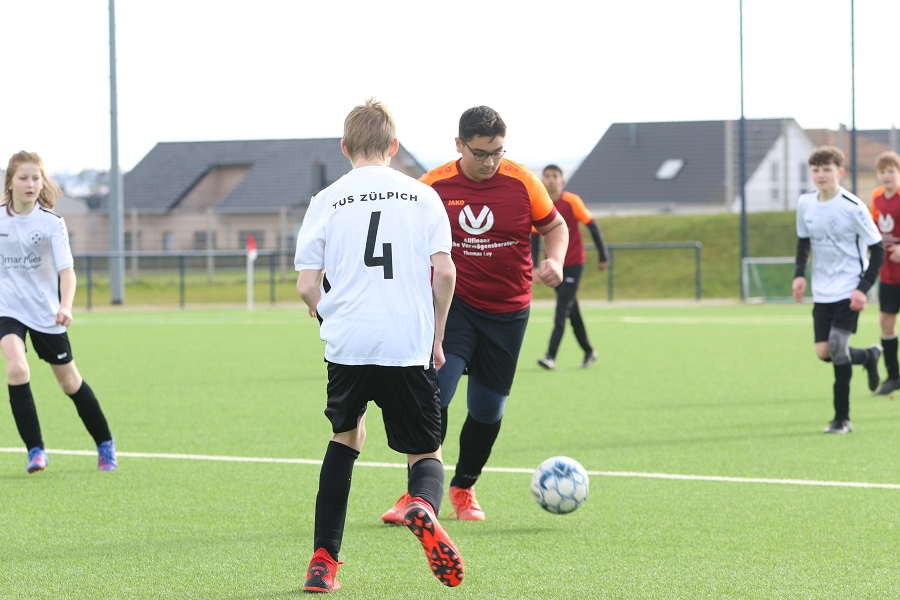 Spielerisch waren ein paar gute Ansätze erkennbar, da die Jungs es mit Kombinationsfußball probierten. Das Positionsspiel klappte ebenfalls recht ordentlich. Da Zülpich aber einen Deut besser war, musste die eigene Defensive viel arbeiten. Aber die Jungs kämpften recht beachtlich, auch wenn nicht jede Aktion klappte. Letztlich waren es aber schon deutlich weniger Fehler die produziert wurden. Die erhöhte Defensivarbeit wirkte sich aber auch die eigenen Offensivaktionen aus, denn diese blieben recht überschaubar. Wer aber nach dem 0:1 in der 19. Minute dachte, dass die Mannschaft in ihr altes Muster zurückfiel, sah sich getäuscht. Die Jungs wehrten sich in einem recht fairen Fußballspiel nach Kräften. Eine Hereingabe von Felix H. von rechts konnte Mathis mit der ersten richtigen Torchance zwar noch nicht verwerten, aber das Team blieb dran und setzte in der Folge und der besten Spielphase nach. Eine Traumkombination zwischen Maxim und Felix H. brachte erneut Mathis in Abschlussposition. Dieses Mal saß der Schuss aufs untere rechte Eck zum, zu diesem Zeitpunkt absolut verdienten 1:1 (34.), mit welchem es auch in die Pause ging.