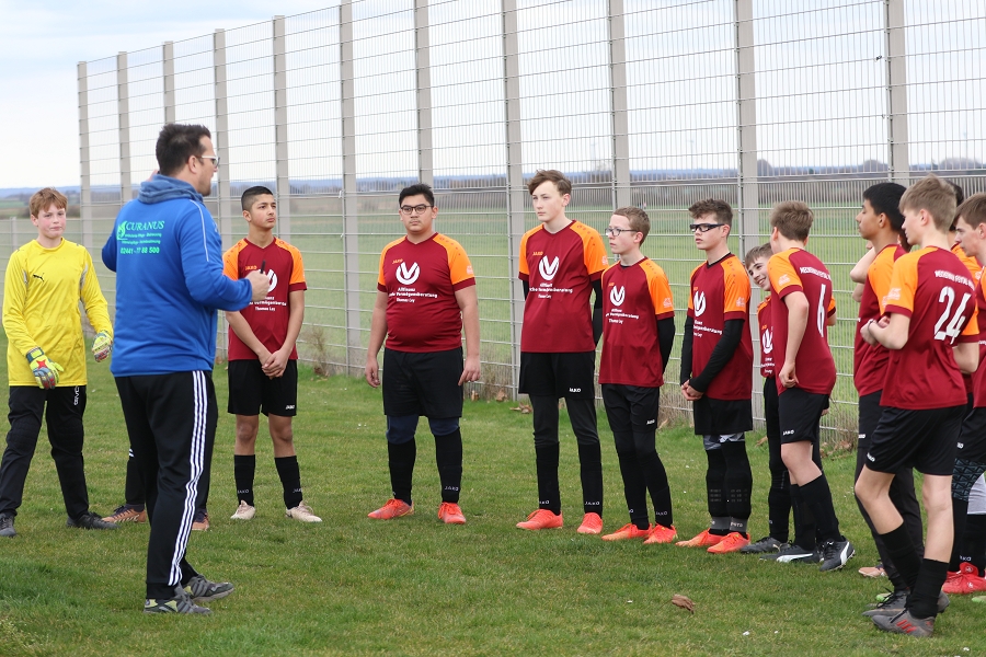 Überraschend für die mitgereisten Eltern war sicherlich die Besetzung der Torwartposition zum Spielbeginn. Der etatmäißge Keeper Philipp lief nämlich mit dem Feldspielertrikot auf und stattdessen begann Simon zwischen den Pfosten. Eine Überlegung des Trainerteams Torsten und Theo, die schon seit ein paar Wochen reifte und im Training bereits geübt wurde. Vorneweg, Simon machte seine Sache gut und legte mit dem zunehmenden Spielverlauf auch sämtliche Eigenzweifel ab. Beim Gegentor war er machtlos. Philipp hingegen begann im Sturm und sollte mit Bällen gefüttert werden. Ein paar vielversprechende Situationen waren dabei, da er auch immer wieder von seinen Mitspielern gesucht wurde. Zu einem Torabschluss reichte es aber für ihn nicht.