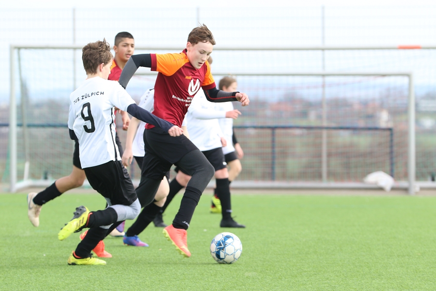 In der zweiten Hälfte tauschten Simon und Philipp das Trikot und die Position. Die Trainer sahen mit der Rückkehr zum angestammten Torwart durchaus die Chance hier etwas Zählbares mitzunehmen. Und so kam es dann auch, dass Philipp gleich mehrfach aufmerksam und zuverlässig die auf sein Tor abgegebenen Schüsse entschärfen musste. Nach vorn ging hingegen nur recht wenig. Meistens waren es Einzelaktionen und Bälle in die Spitze, die mit etwas Glück auch uns einen weiteren Treffer hätte bescheren können. Das Siegtor für Zülpich fiel dann in der 58. Minute. Solange konnten wir uns recht gut wehren. Der Treffer fiel per Konter über rechts und einer Hereingabe ins Sturmzentrum. Der freistehende Stürmer ließ Philipp keine Chance und sicherte seiner Mannschaft so die drei Punkte. Auch wenn so eine knappe Niederlage immer ärgerlich ist, so konnten die Jungs nach einer anständigen Leistung das Feld erhobenen Hauptes verlassen.