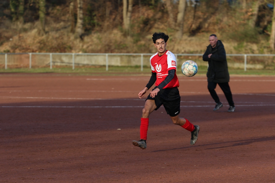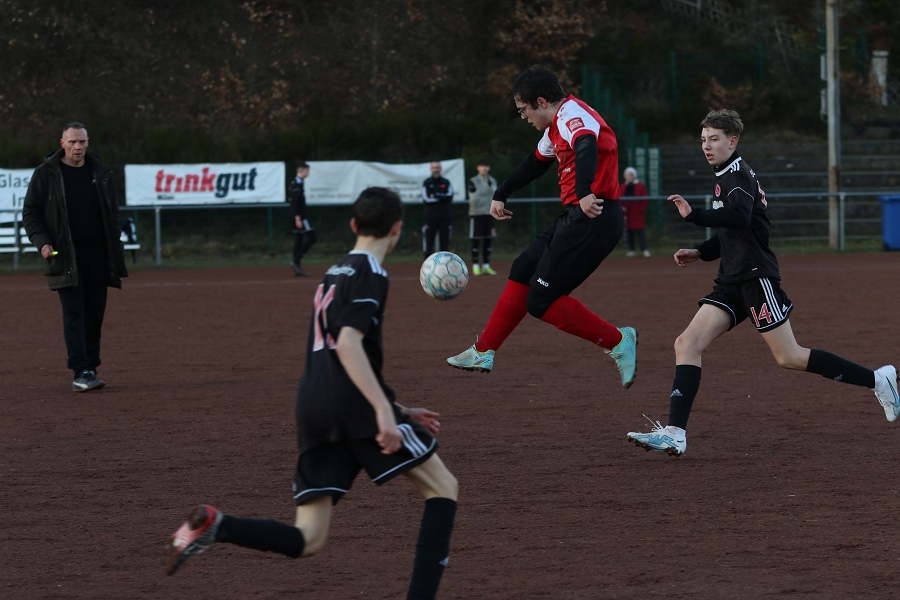 In der Folge bekamen die Gäste immer mehr Zugriff zum Spiel und schafften es tatsächlich unsere Angriffsbemühungen einzudämmen. Einzig ein strammer Schuss von Nils war noch zu notieren, den der gegnerische Torhüter aber ebenfalls stark abwehren konnte (17.). Trainer Walid Yassine kündigte schon vor der Partie an, dass er mehrfach hin- und herwechseln wolle um den Jungs die am Fastenmonat teilnehmen ihre Pausen zu gönnen. Gesagt, getan. Das durch die vielen Wechselspiele eine gewisse Souveränität verloren geht, war zwangsläufig. Der Gegner wurde aber nicht nur deswegen stärker, sondern individuelle Fehler führten ebenfalls dazu, dass man etwas den Faden verlor. Letztlich hielt man sich aber schadlos und überstand mehrere Gästeecken sowie zwei Torschüsse, wobei sich Moritz bei einem stark auszeichnen konnte. Es ging mit einer soliden, aber nicht schönen 3:0 Führung in die Kabinen.