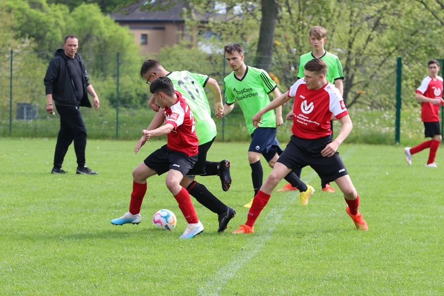 Die B-Junioren von Walid Yassine und Peter Flimm haben durch das 1:3 (1:1) gegen die Sportfreunde Wüschheim-Büllesheim den zweiten Tabellenplatz an die JSG Rotbachtal/Strempt (4:3 Sieg in Bliesheim) verloren. Damit rutschte die Mannschaft einen Spieltag vor Saisonende auf den dritten Platz der Kreisleistungsstaffel ab.