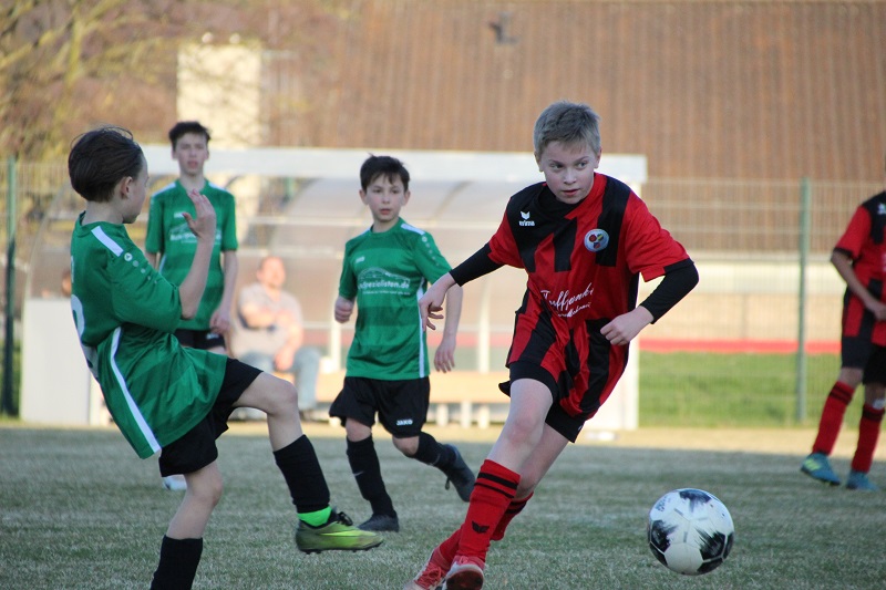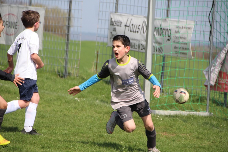 Nach zwei Umstellungen unserseits in der Halbzeit war es die SGRS die besser in das Spiel fand und verdienterweise verkürzen konnte. Jetzt galt es dagegen zu halten, damit das Spiel nicht aus den Händen flutschte. Die Abwehr ackerte etwas wild, aber erfolgreich. Das Mittelfeld setzte immer wieder gute Spielzüge an, doch leider verfehlten die Stürmer meist ihr Ziel. Knapp zehn Minuten vor dem Ende sorgte abermals Maxim Richart mit seinem dritten Tagestreffer für das beruhigende 4:2 aus unserer Sicht, welches dann nach hinten raus auch nicht mehr gefährdet wurde. Sportlich fair ging das Spiel dann zu Ende und beim obligatorischen Neun-Meterschießen waren ohnehin alle Kinder Sieger. Unsere Jungs freuten sich anschließend über den ersten Sieg in der Frühjahrsrunde.