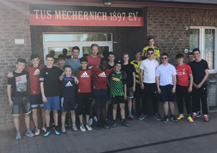 Die Mannschaft in den schwarzen Trikots aus Mechernich ist mit kleineren Personalproblemen angereist. Jedoch hat man es den Mechernichern nicht angemerkt. Die Mannschaft hatte den Ball gut in den eigenen Reihen gehalten und gut nach vorne gespielt. Allerdings wurde man dadurch anfällig auf Konter, welche die Bliesheimer nicht nutzen konnten. Mechernich war zwar nicht voll dominant aber trotzdem die bessere Mannschaft. Schließlich spielte die Verteidigung aus Bliesheim in der 9. Minute einen Fehlpass, welcher der Nummer 15 von Mechernich, Reuben Edeh, vor die Füße fiel. Ganz abgeklärt schoss er den Ball mit seinem schwächeren linken Fuß ins lange Eck unter die Latte. Dies war die verdiente Führung für Mechernich, jedoch hatte die Mannschaft Glück, dass Bliesheim ihre Konterchancen verspielten. Es war nun ca. die 30. Spielminute und Leo Lenz nahm den Ball nach einem guten Spielaufbau hervorragend an, nutzte die Räume, die Bliesheim ihm gab und lief nach vorne. Im Rücken des Gegners fand er Pascal Grabowski die Lücke und spielte einen perfekten Schnittstellenball auf die Mechernicher Nummer 10, welcher im 1 gegen 1 gegen den Bliesheimer Torwart cool blieb und den Ball ins lange Eck schob. Trotz des Rückstandes ließen die Jungs aus Bliesheim nicht locker und versuchten den Anschlusstreffer zu erzielen, aber Mechernich hielt sehr gut dagegen. Bisher war es ein sehr hitziges Match mit ein paar Streitigkeiten. Es war aber alles noch im Rahmen. Dann, nur 5 Minuten nach dem 2:0, fiel das 3:0 durch einen gut geschossenen Freistoß von Leander Schüller auf Pascal Grabowski, der höher als alle Bliesheimer sprang und den Ball mit einer Perfektion, wie sie selten auf dem Niveau zu finden ist, in den linken Winkel köpfte. Man sollte meinen, dass die Mechernicher das Spiel ganz sicher in die Halbzeit bringen würden, jedoch entstand eine Unruhe die zu Stellungs-, Pass-, Absprache- und individuellen Fehlern führte. Und wieder konnte Bliesheim ihre Spielzüge nicht komplett präsentieren. Glück für Mechernich, denn falls ihre Chancenverwertung an dem Tag nicht so hoch gewesen wäre, stände es unentschieden.