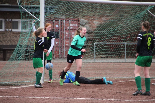 Gegen den direkten Tabellennachbarn von DJK Rasensport (RaSpo) Aachen-Brand konnte unsere B-Juniorinnenmannschaft am Ende verdient mit 3:0 gewinnen und dabei den bislang höchsten Saisonsieg einfahren. Das Spiel war eine Viertelstunde alt, da gab es den ersten Aufreger im Spiel. Lea G. wurde über rechts im Sturmzentrum bedient und kam aus Kurzdistanz zum Abschluss. Doch statt den Ball in das Tor zu schießen, verfehlte sie den riesigen Kasten und es blieb beim 0:0. Die Gäste, welche sich lange Zeit als ebenbürtig erwiesen, versuchten ihr Glück im Konterspiel, wurden aber das ein ums andere Mal von der durch Sophie organisierten Abwehrreihe aufgehalten. Lauren im Tor hatte einen insgesamt entspannten Nachmittag und brauchte kaum eingreifen. Drei Minuten vor dem Halbzeitpfiff, der guten Schiedsrichterin, zog Lea G. über links auf und davon und hinein in der 16er. Dort bediente sie Ella die den Abschluss suchte und unter Mithilfe einer Gegenspielerin zum 1:0 traf, was gleichzeitig den Pausenstand bedeutete.