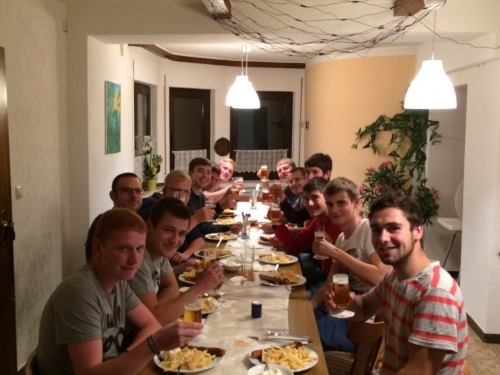 Der Samstag des Trainingslagers begann mit einem stärkenden Frühstück. Dann machte man sich mit den Drahteseln auf den Weg nach Eiserfey, wo die Spieler die nächste Einheit auf dem Sportplatz erwartete. Nach einer kurzen taktischen Unterweisung musste man sich wieder den kräftezehrenden Berg nach Lorbach hinaufarbeiten. Bevor man sich zum Freundschaftsspiel nach Weyer aufmachte