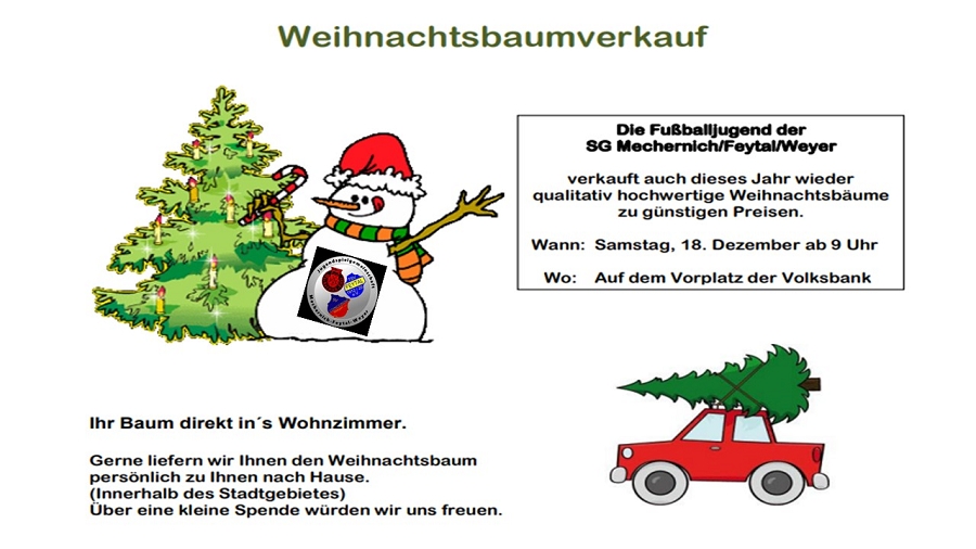 Jugendgeschäftsführer Nico Schmitz sagt: „Gerne liefern wir Ihnen innerhalb des Stadtgebietes den Weihnachtsbaum auch persönlich zu Ihnen nach Hause. Natürlich gelten beim Verkauf sowie der späteren Anlieferung die gültigen Auflagen gemäß der Coronaschutzverordnung." Die Jugendabteilung freut sich über kleine Spenden, denn grundsätzlich gilt, dass die Anlieferung im Kernort kostenlos ist.