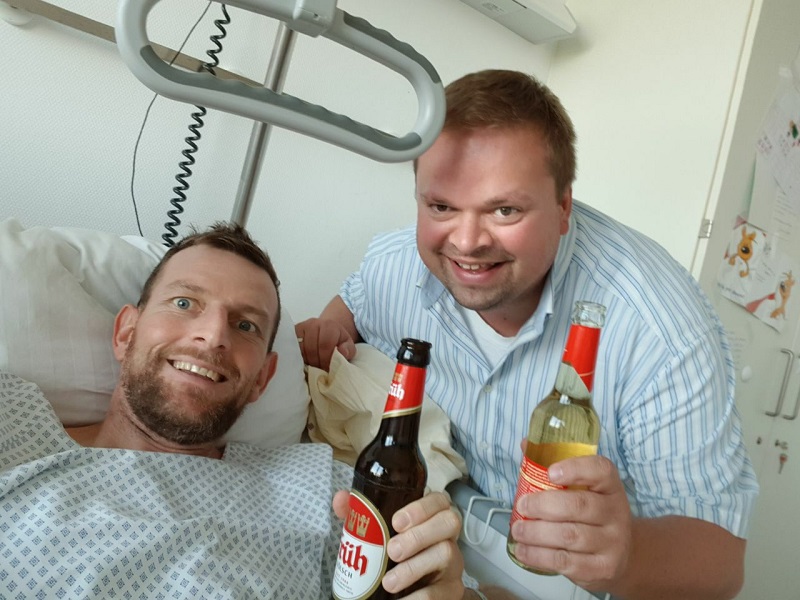 ich war heute beim Elch im Krankenhaus und soll Euch ALLE recht herzlich grüßen. Marco geht es 22 Tage nach dem schweren Unfall den Umständen entsprechend gut. Nach zwei OP`s in Mechernich ist er nun in Köln-Merheim angekommen und wurde dort auch schon zwei weitere Male operiert. Auch wenn weitere Operationen folgen werden, so habe ich heute einen sehr optimistischen Elch angetroffen, der sehr positiv in die Zukunft schaut.